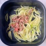 7. 炒到洋蔥半透明狀、有香氣後,放入部分牛五花片