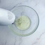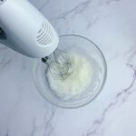 加入1/3 30g的椰花蜜糖,再用攪拌器打至泡泡變細緻,再加入1/3的椰花蜜糖