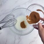蛋黃加入20g椰花蜜糖,隔水加熱至65°C,過程要不斷攪拌
