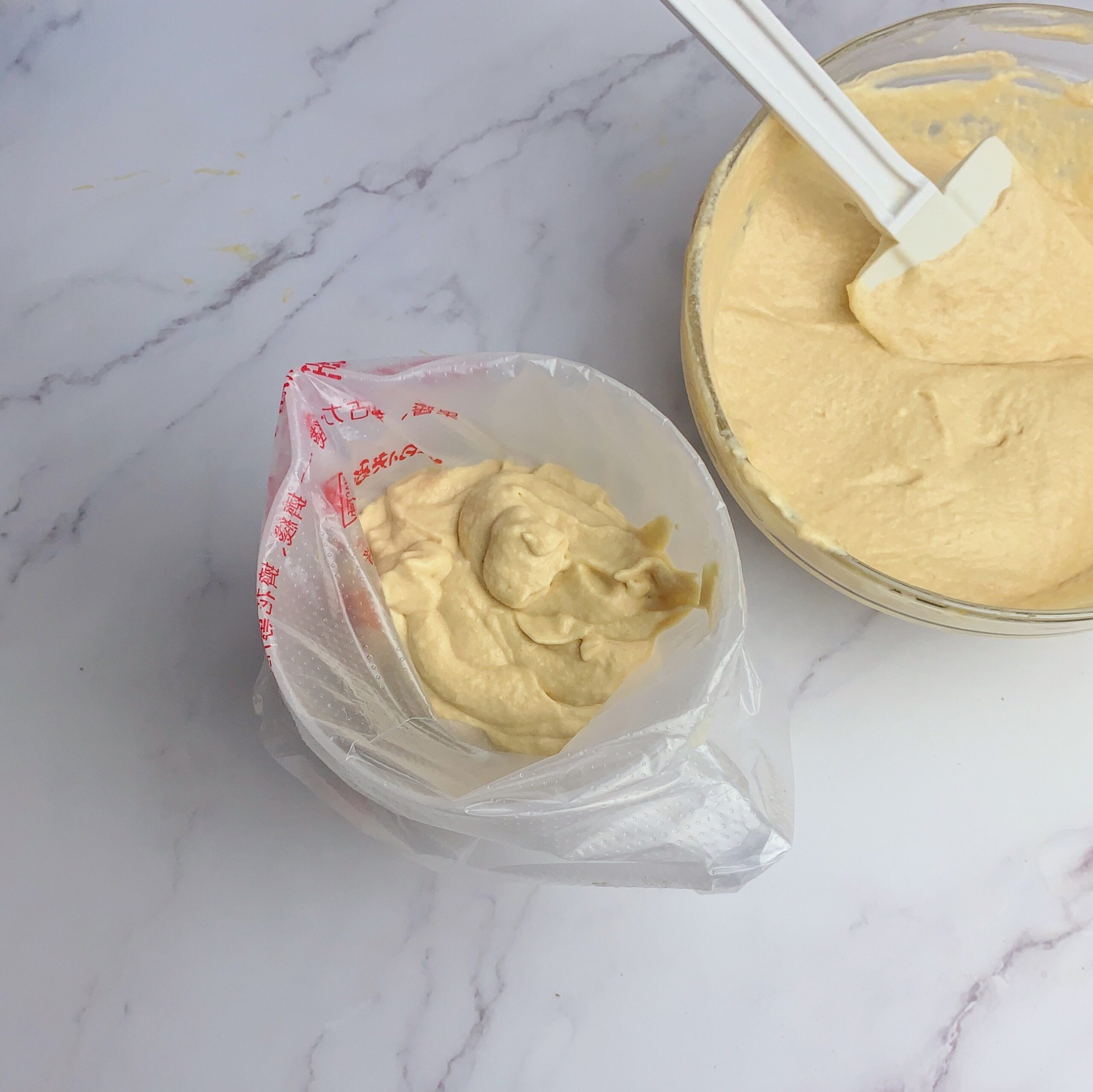 將混合完成的麵糊裝入擠花袋中