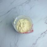 將完成的慕斯餡裝入擠花袋中,剪一個小口備用