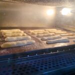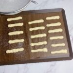 在擠好的麵糊上灑上一層麥芽糖醇