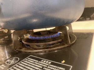瓦斯爐開最小火(關火前的最小火,註1),蓋上鍋蓋,煎1分鐘