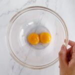 將雞蛋的蛋黃與蛋白分開,蛋白另外放入乾淨、無油無水的大盆中備用