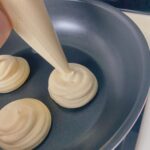 (這個步驟先不用開火的原因是,如果擠的形狀不好看,還可以鏟起來重來。但不能太多次會消泡)