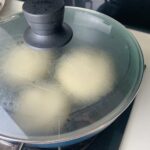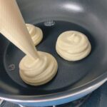 打開鍋蓋,擠上第二層舒芙蕾鬆餅,蓋上鍋蓋再煎2分鐘