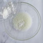 蛋白中加入少許白醋或檸檬汁,用電動打蛋器打發